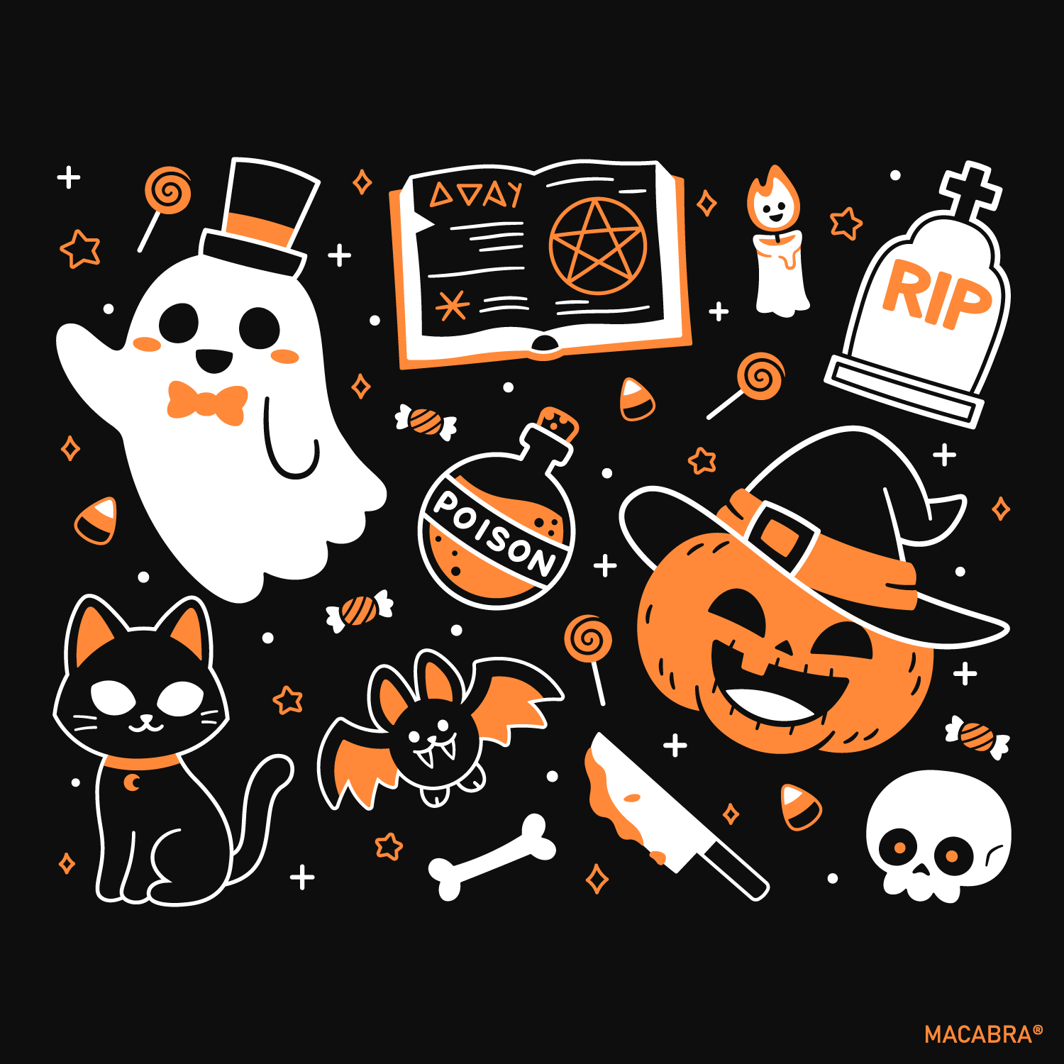Em clima de Halloween? Pois a Camiseta Halloween Vibes chegou! Uma camiseta preta com uma estampa adorável e fofa para uma ocasião totalmente na vibe dessa época do ano. Confortável e versátil, é uma peça ideal para celebrar o espírito do Halloween com estilo.